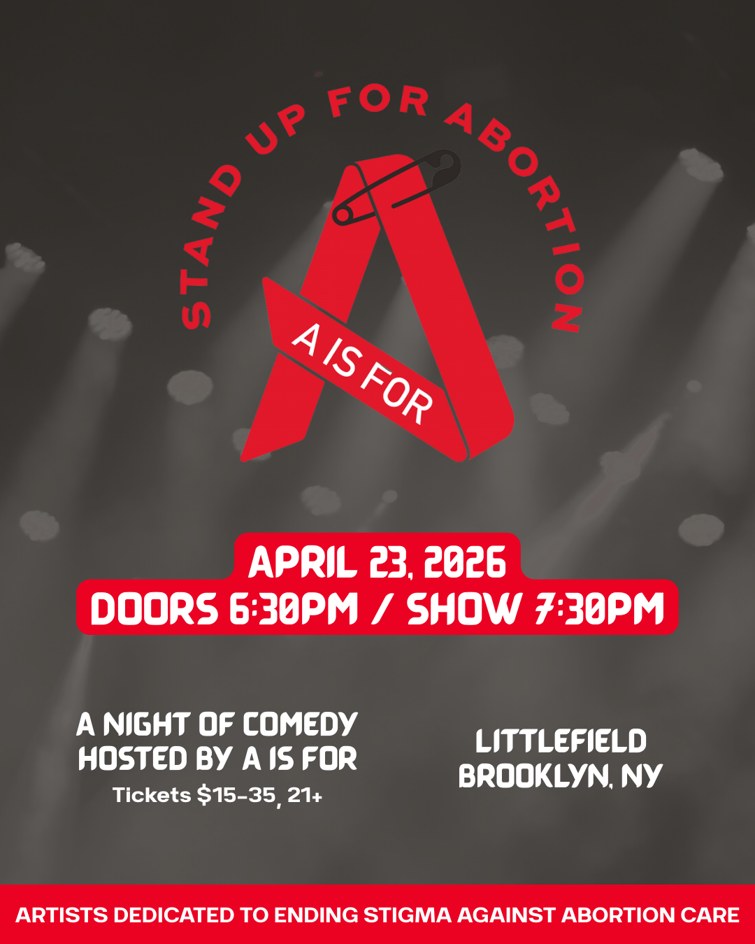 An unapologetic line-up of comics come together to raise awareness for A is For, an artist-driven organization that is dedicated to reproductive rights and ending the stigma against abortion care.